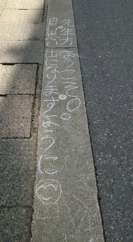 連絡をいただいていたので、その日は息子が先生に向けて道路に文字を書いてくれました。